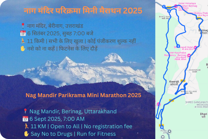 यह दौड़ उत्तराखंड के पिथौरागढ़ ज़िले में स्थित बेरीनाग के नाग मंदिर से शुरू होकर वहीं समाप्त हुई। लगभग 2000 मीटर की ऊँचाई पर स्थित यह मंदिर स्थानीय आस्था, संस्कृति और प्रकृति के साथ संतुलन का प्रतीक है।